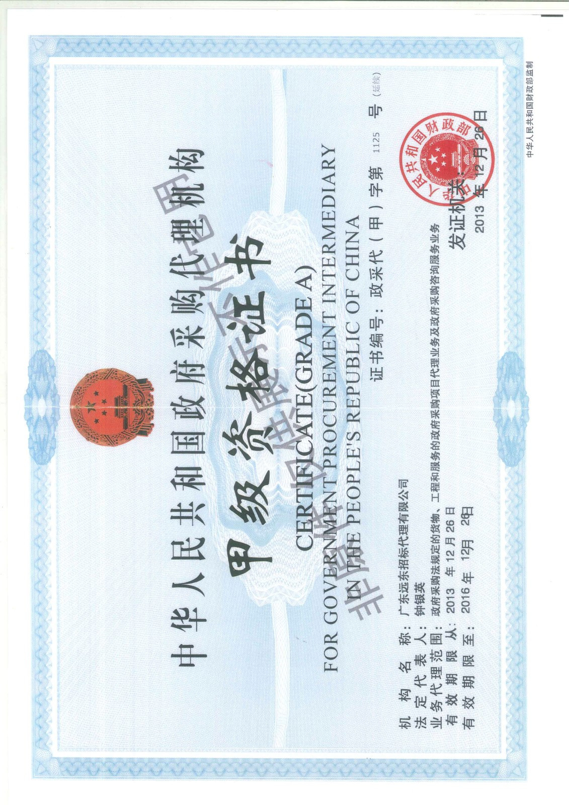 政府采購代理甲級(jí)資質(zhì)